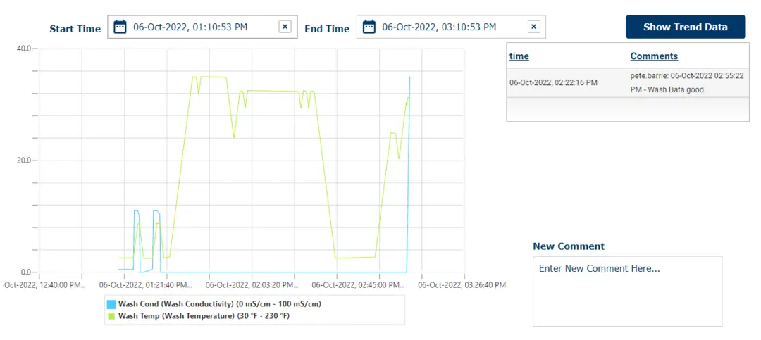 Easy-to-read, scalable, digital trending charts. Export data to excel tables as needed. Interactive to show various data points together.